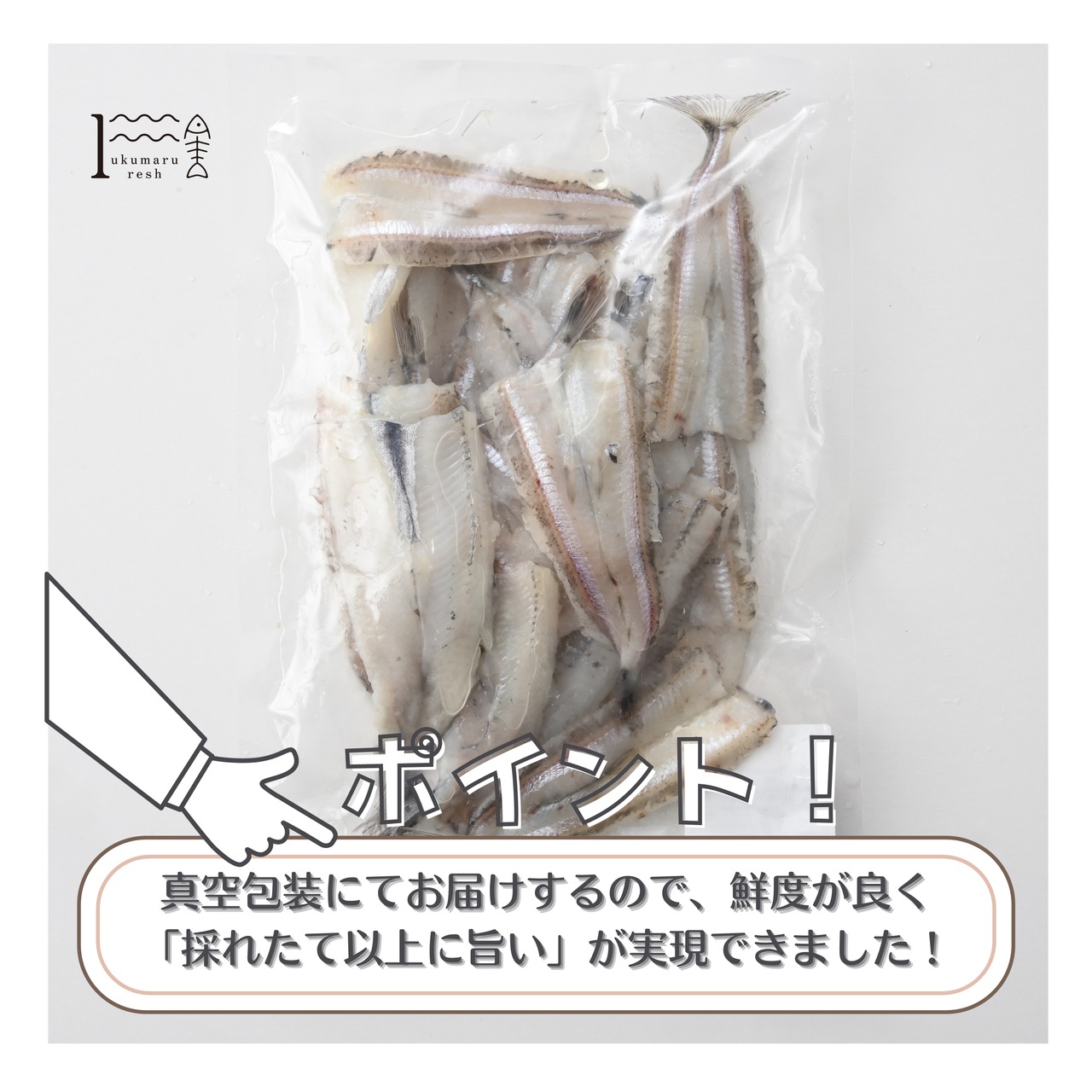 厳選した越前町産のメギス(ニギス)を開いてバラ凍結しました。